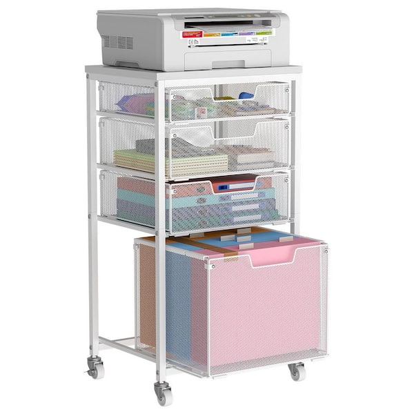 4 Drawer Rolling File Cart 11.5D x 15W x 25.6H Filing Cabinet with Hanging File Organizer Wheels White