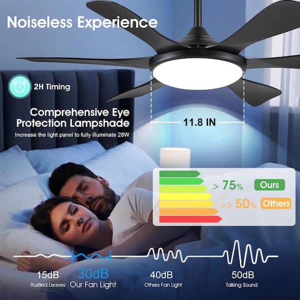 47 in. APP Control Indoor Black Low Profile Standard Ceiling Fan with LED Dimmable