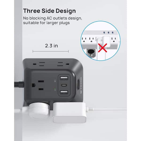5-Outlet Desk Clamp Power Strip Surge Protector with 3-USB Ports and 6 ft. Cord 2.5 in. Tabletop Edge Thick in Black