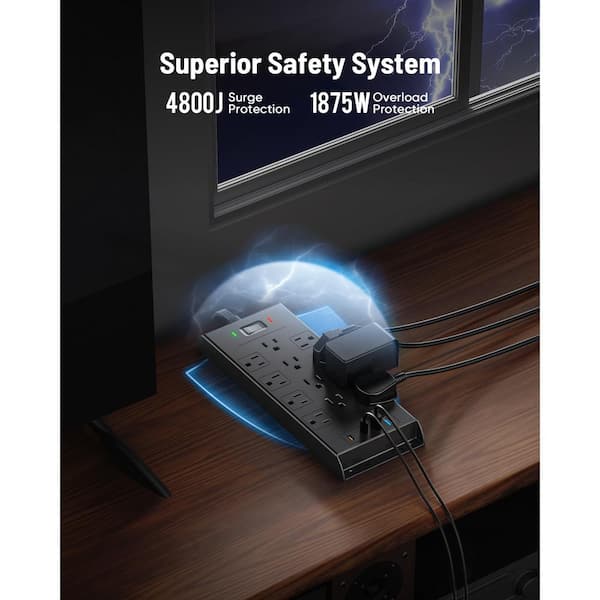 5 ft. Power Strip 12-Outlet AC 4800 Joules Surge Protector Wall Mountable Extension Cord with 2 USB A 2 USB C