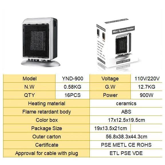 6.69 in. 900 W Mini Electric Forced Air Heater Small Desktop Household Ceramic Electric Heater in Gold