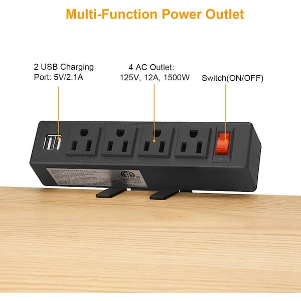 6 ft. Desk Clamp Surge Protector Power Strip, Desktop Power Outlet Clamp Mount with 4 AC Outlets and 2 USB Ports, Black