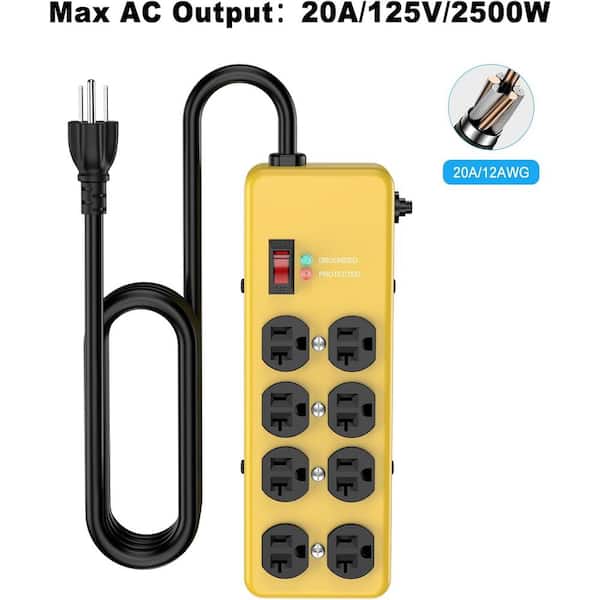 8-Outlet 20A Power Strip Surge Protector Metal with 12-Gauge, 4800J and 10 ft. Cord Length in Yellow