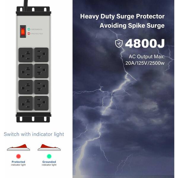 8-Outlet Power Strip Surge Protector with 6 ft. Extension Cord and Switch in White