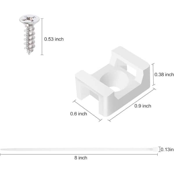 8 in. Cable Zip Tie Saddle Type Mount 0.9 in. Base Anchor Wire Cable Clips Organizer Holders Clamps White (100-Pack)