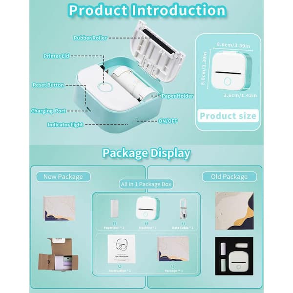 Mini Thermal Sticker Printer Portable Inkless Label Maker Bluetooth for Students Study Notes Photos Graphics 3 Rolls