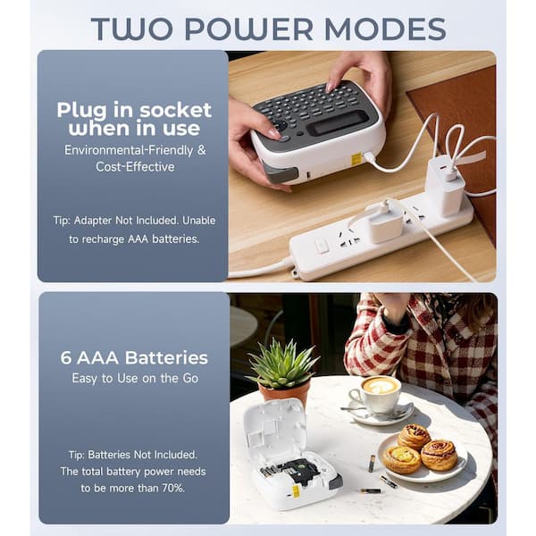 Portable Label Maker Machine Laminated Waterproof Labels with 12mm White Tape Built-in Cutter Home Office School