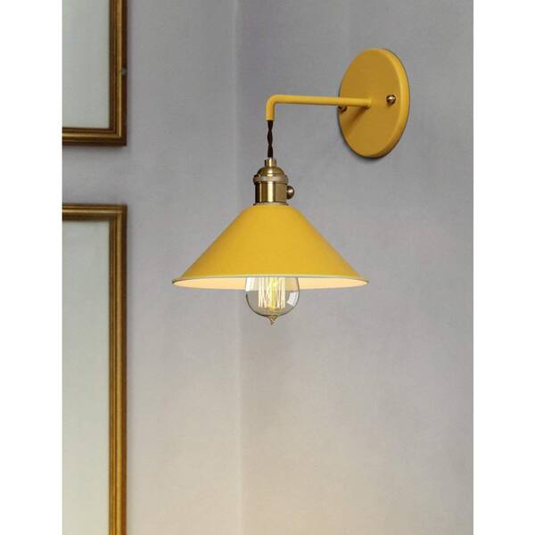Quality 4.3 in. 1-Light Yellow Vintage Smart Home Wall Sconce with Metal Shade