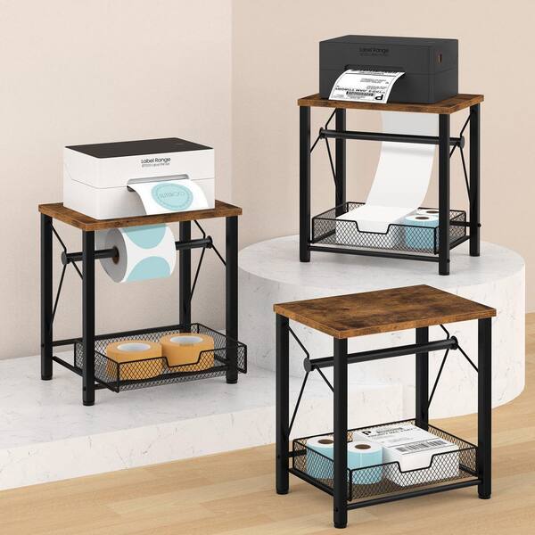 Wooden Thermal Label Holder Desktop Stand with Drawer for Roll Fan-Fold Labels Space Saving Brown 1 Pack