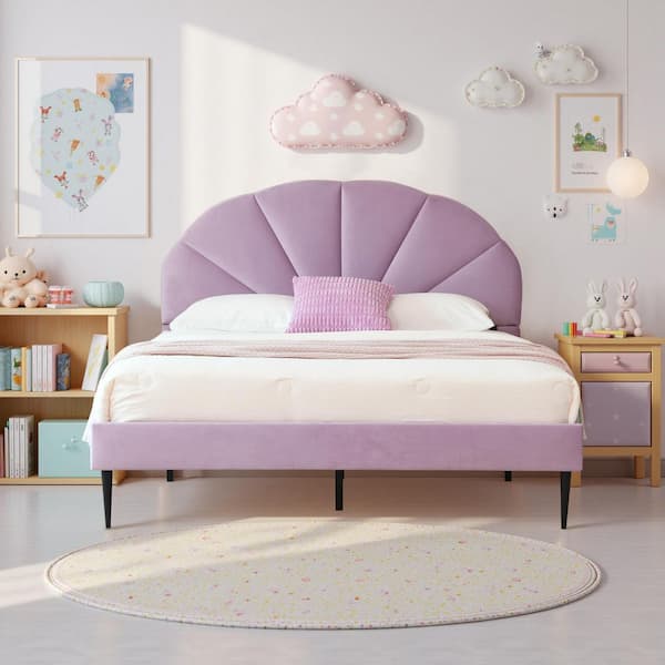 Purple Frame Full Size of Luxury Velvet Platform Bed with Seashell-Shaped Headboard