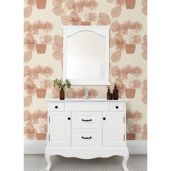 Aida Pink Potted Plant Fabric Non-Pasted Matte Wallpaper