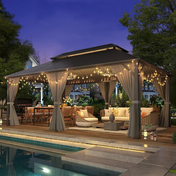 12 ft. x 20 ft. Hardtop Gazebo with Aluminum Frame, Galvanized Steel 2-Tier Roof, Gazebo with Netting and Curtains