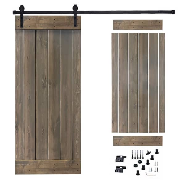 30 in. x 84 in. Briar smoke Painted Wood Sliding Door with Hardware Kit, Pre-Drilled Ready to Assemble