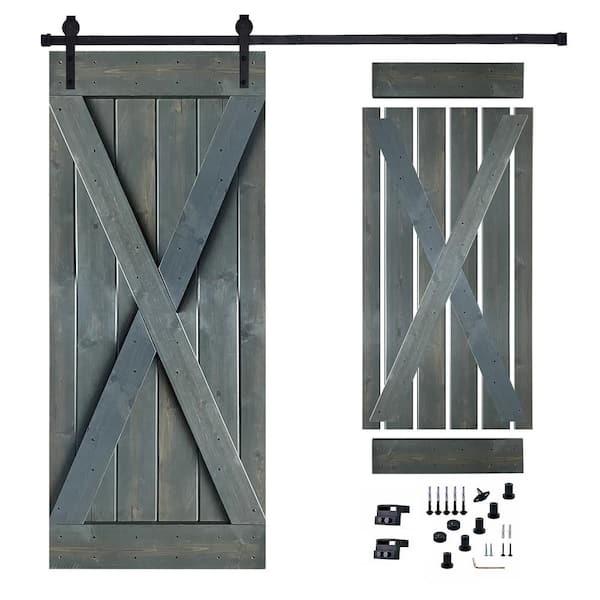 30 in. x 84 in. Grey Painted Wood Sliding Door with Hardware Kit, Pre-Drilled Ready to Assemble