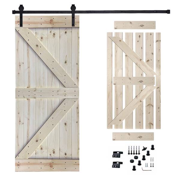30 in. x 84 in. Unfinished Painted Wood Sliding Door with Hardware Kit, Pre-Drilled Ready to Assemble