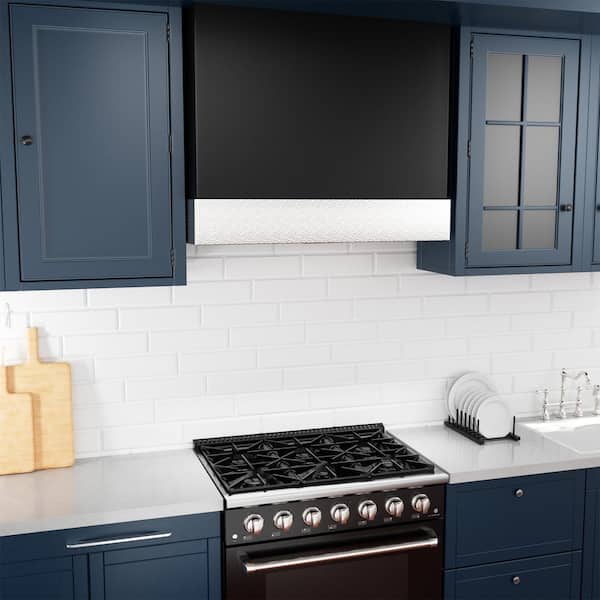36 in. Stainless Steel Ducted Wall Mount Range Hood with Powerful 600 CFM Vent Motor, 3-Speed, in Black with Nickel