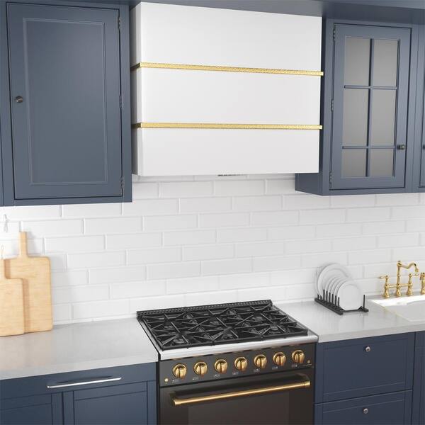 36 in Stainless Steel Range Hood with Powerful Vent Motor, 600 CFM, 3-Speed, Wall Mount, in White with Gold