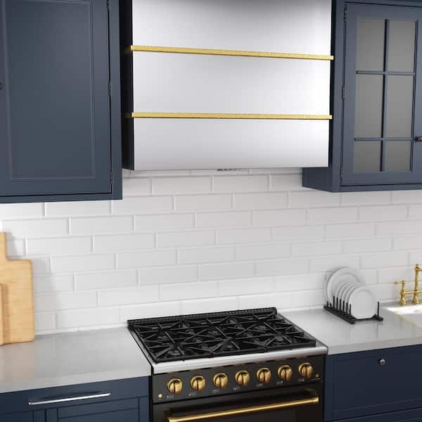 36 in Stainless Steel Range Hood with Vent Motor, 600 CFM, 3-Speed, Wall Mount, in Brushed Stainless Steel with Gold