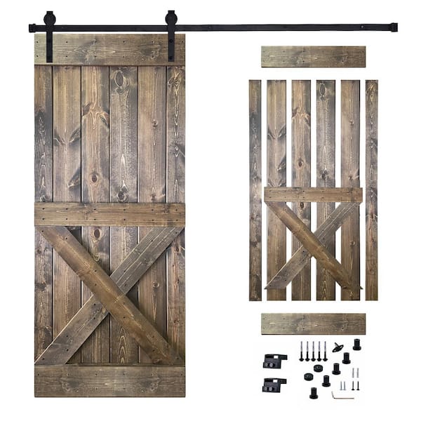 36 in. x 84 in. Dark Brown Painted Wood Sliding Door with Hardware Kit, Pre-Drilled Ready to Assemble