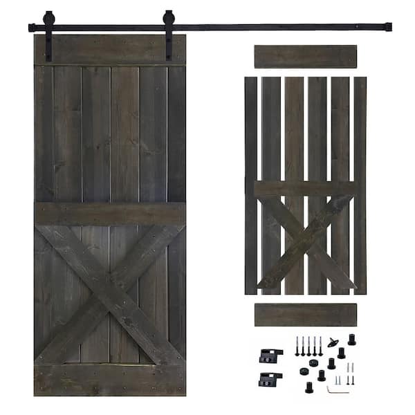 36 in. x 84 in. Espresso Painted Wood Sliding Door with Hardware Kit, Pre-Drilled Ready to Assemble