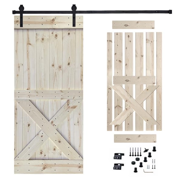36 in. x 84 in. Unfinished Painted Wood Sliding Door with Hardware Kit, Pre-Drilled Ready to Assemble