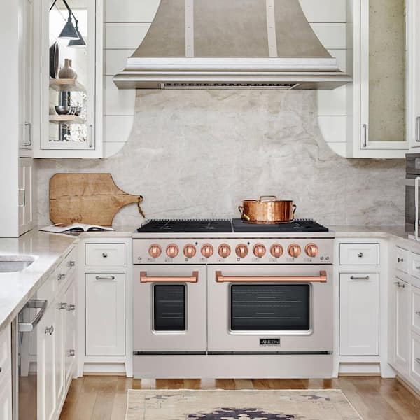 48 in. 6.7 cu. ft. Freestanding Double Oven Gas Range with 8-Burner, Griddle, in Stainless Steel with Copper
