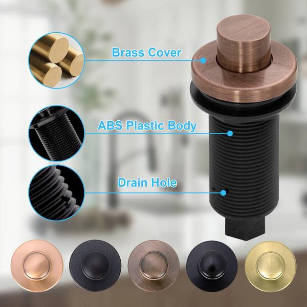 Garbage Disposal Air Switch Kit, Dual Outlet, Solid Brass Button, Antique Copper Long Button Air Switch - AK79003B
