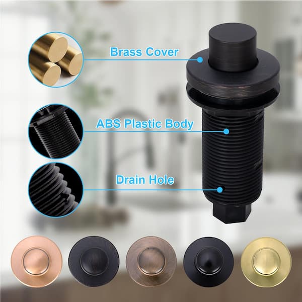Garbage Disposal Air Switch Kit, Dual Outlet, Solid Brass Button, Oil Rubbed Bronze Long Button Air Switch - AK79003B