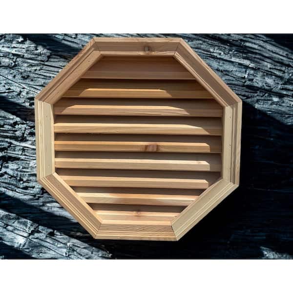 24 in. x 24 in. Octagon Cedar Wood with Built in Screen Gable Vent with Brickmould Trim
