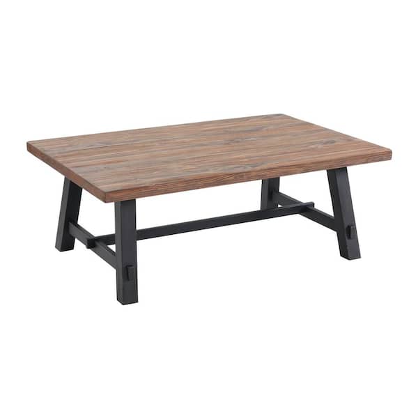 Adam 48 in. Brown/Black Rectangle Solid Wood Top Coffee Table