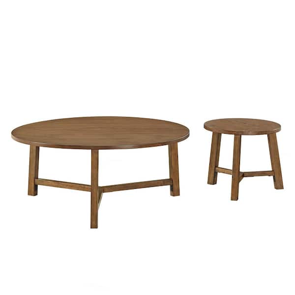Alaterre 44 in. Newbury Round Pine Wood Coffee Table and End Table Set, Pecan