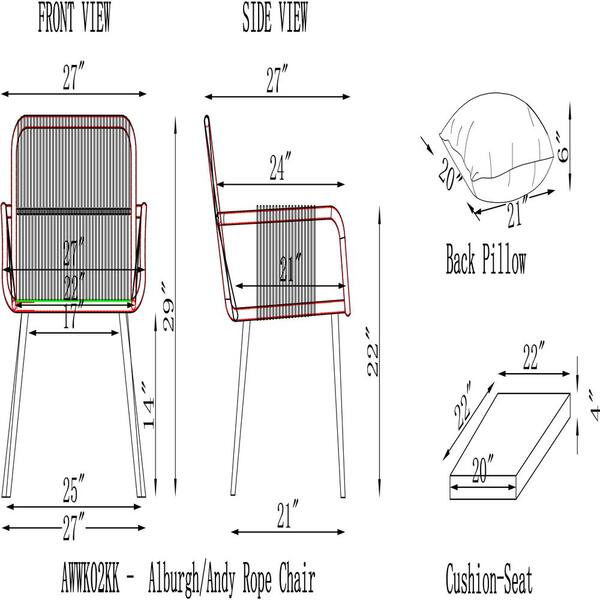 • Two elegantly designed chairs and an 18-inch high cocktail table
