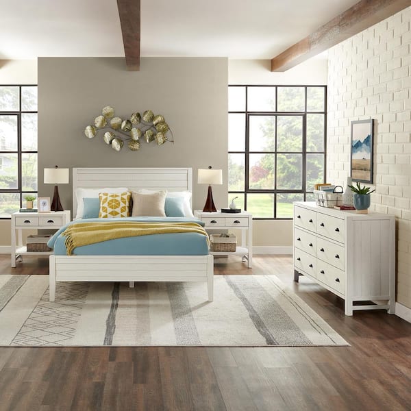 Arden 5-Piece Wood Bedroom Set with Queen Bed, Two 2-Nightstands w/ open shelf, 5-Drawer Chest, 6-Drawer Dresser, White