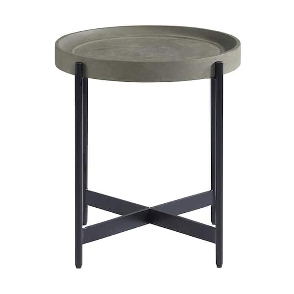 Brookline 20 in. Gray Round Wood with Concrete-Coating End Table