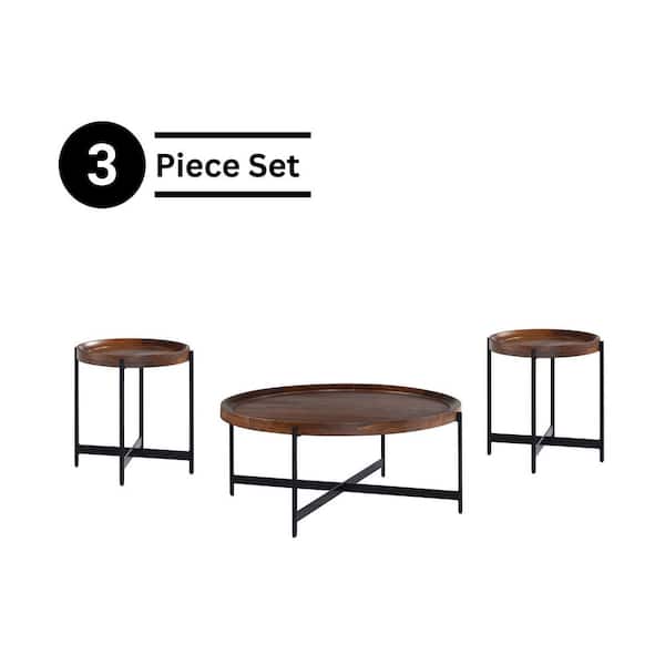 Brookline 42 in. Chestnut Round Wood Coffee Table and Two 20 in. End Tables 3-Piece Set