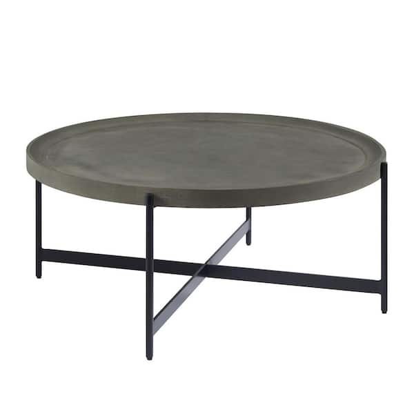Brookline 42 in. Gray Round Wood with Concrete-Coating Coffee Table