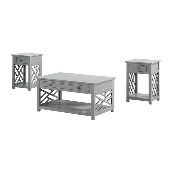 Coventry 3-Piece 36 in. Gray Medium Rectangle Wood Coffee Table Set with Drawer