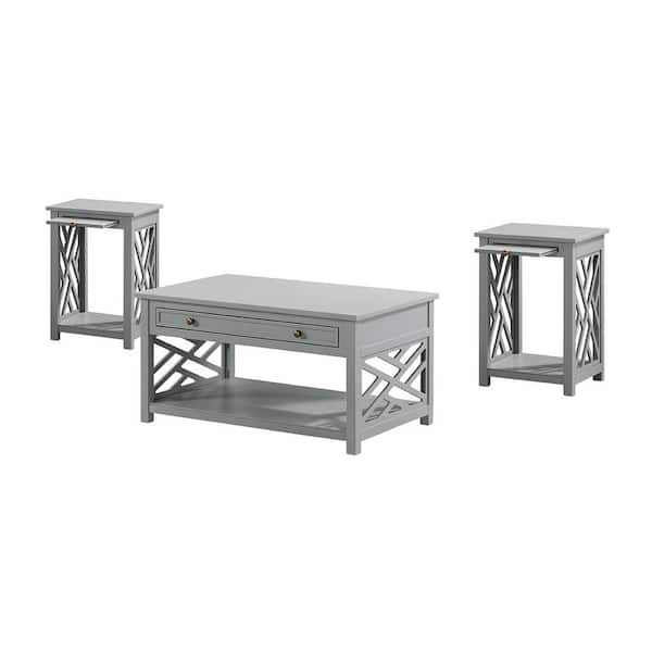 Coventry 3-Piece 36 in. Gray Medium Rectangle Wood Coffee Table Set with Drawer