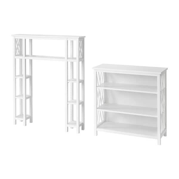 Coventry 39 in. W Over Toilet Open Shelving Unit Space Saver with Side Shelves, 32 in. W Bath Storage Shelf in White