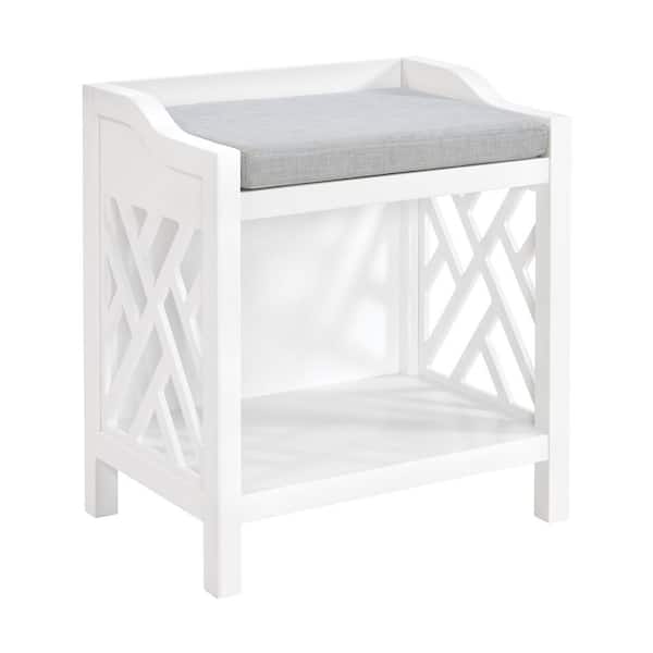 Coventry White Accent Bathroom Dining Bench with Cushion 22 in. .