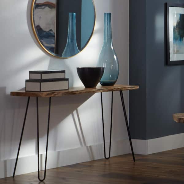 Hairpin 48 in. Brown/Black Standard Rectangle Wood Console Table with Live Edge