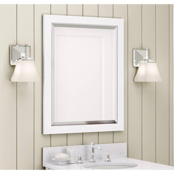 Harrison 25 in. W x 22 in. D Vanity in White with Marble Vanity Top in Beige with White Basin and Mirror