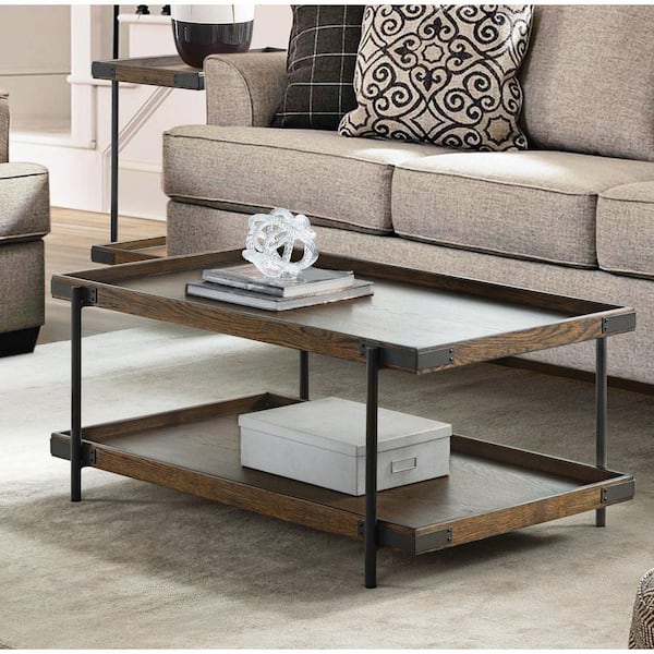 Kyra 42 in. L Rectangle Wood and Metal Coffee Table with Shelf