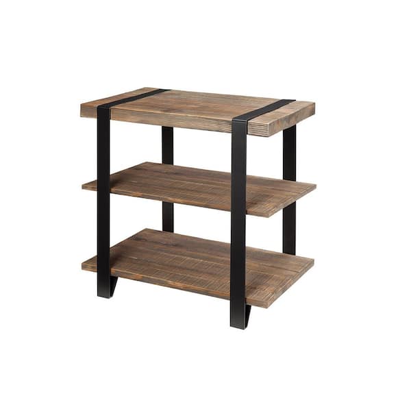 Modesto 27 in. Rectangle End Table with Metal Strap and Solid Wood, Natural Pine Finish, Rustic Industrial Style