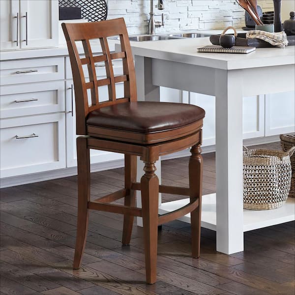 Napa 46 in. Mahogany Rubberwood Bar Height Stool with High Back and Cushioned Seat