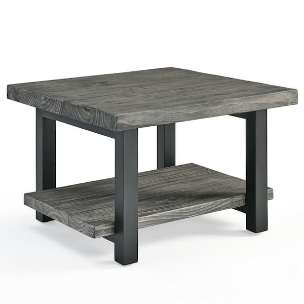 Pomona 27 in. Slate Gray/Black Medium Square Wood Coffee Table with Shelf
