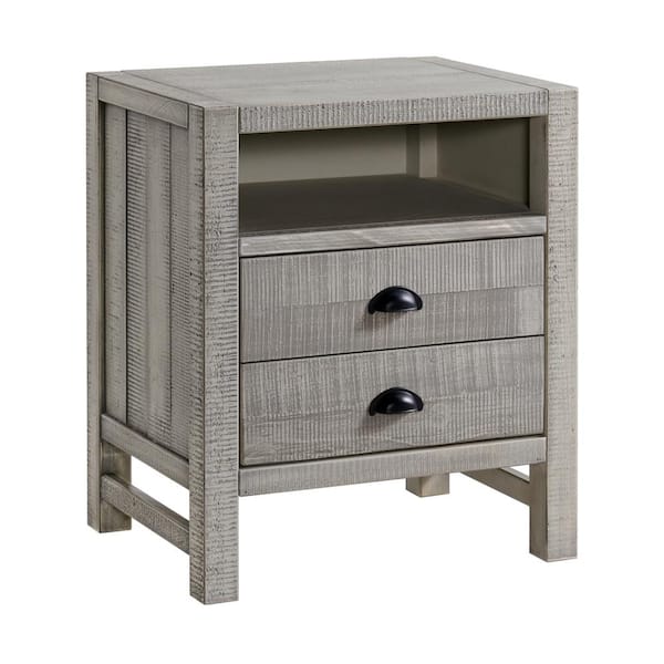 Windsor 2-Drawer Driftwood Gray Wood Nightstand 25 in. H x 22 in. W x 17 in. D