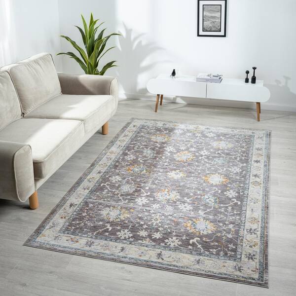 Alaya Gray/Multicolor 7 ft.9 in. x 9 ft.9 in. Floral Performance Area Rug
