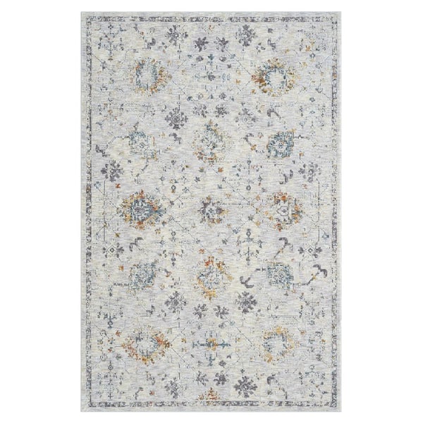 Alaya Light Gray/Multicolor 10 ft. x 14 ft. Floral Performance Area Rug