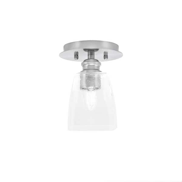 Albany 1-Light 6 in. Brushed Nickel Semi-Flush with Square Clear Bubble Glass Shade